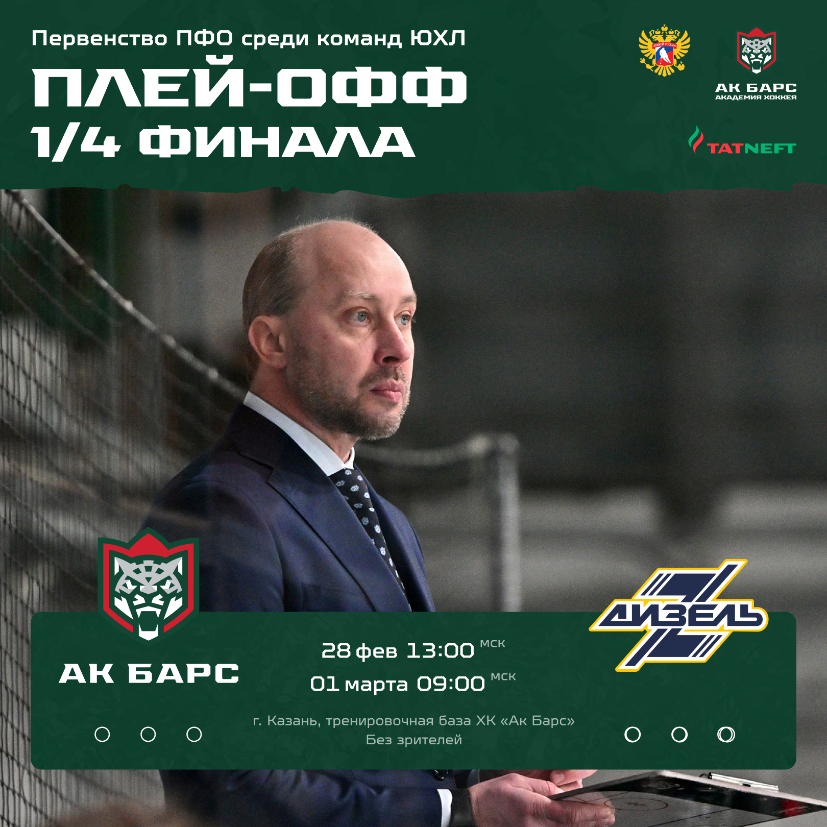 В ближайшие выходные команда ЮХЛ «Ак Барса» стартует в четвертьфинале плей-офф против пензенского «Дизеля».